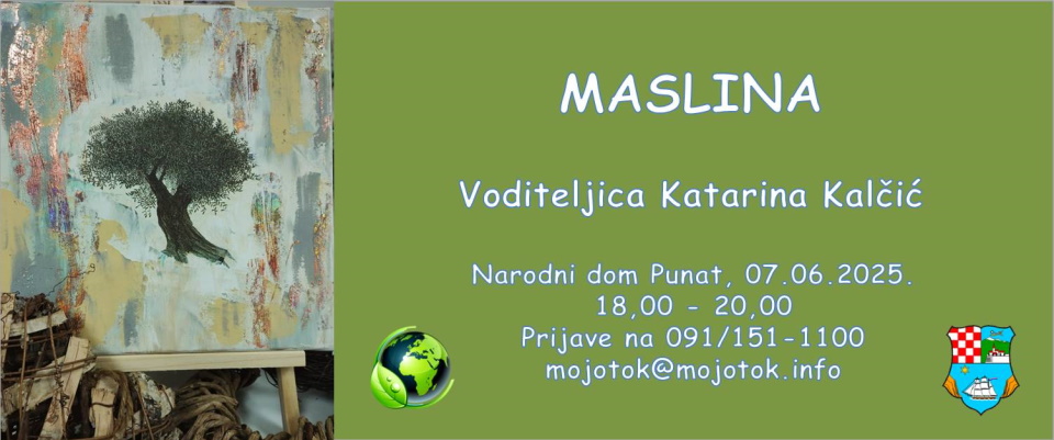 07. 06. 2025. u Puntu održali smo kreativnu radionicu “MASLINA”. Sudionici su mogli odabrati motiv masline, lavande, kadulje, cvijeća… Radili smo s pastama i folijama bez akrilnih boja s akrilnim tintama i sa špatulama umjesto kistova. Na kraju smo ukrašavali metalik bojama. Bila su to dva sata kreativne zabave za velike i male.