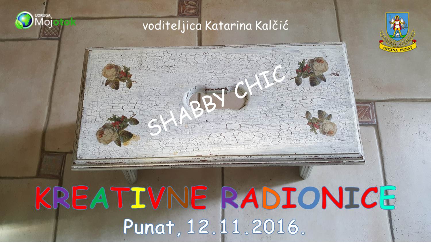 “Kreativna radionica – Shabby chic” prva u nizu planiranih radionica održana je 12.11.2016. godine u “Galeriji Toš” u Puntu zahvaljujući organizaciji Udruge Moj otok, Općini Punat i voditeljici Katarini Kalčić.