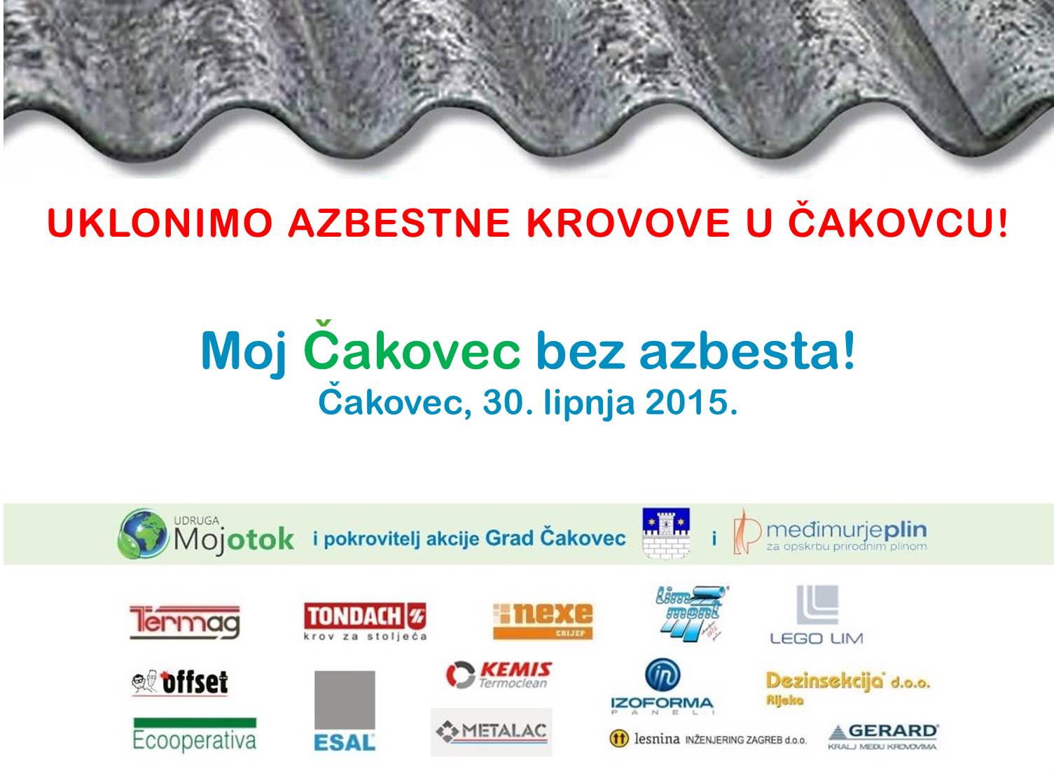 Grad Čakovec se aktivno uključio u našu akciju i uz njihovu svesrdnu pomoć održali smo 30. lipnja 2015. godine prezentciju “Moj Čakovec bez azbesta!”. Bilo je ugodno boraviti u gradu punom raskošnih baroknih i secesijskih spomenika. Prezentaciju smo održali u jednoj od najraskošnijih zgrada, u Trgovačkom kazinu. Veliki odaziv na prezentaciju govori i o njihovoj osvještenosti, a ljubaznost i susretljivost međimuraca je za svaku pohvalu.