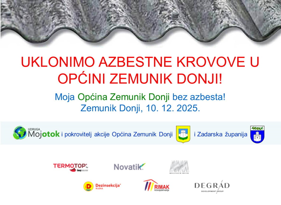 Pod pokroviteljstvom Općine Zemunik Donji i Zadarske županije 10.12.2025. godine održali smo predavanje pod nazivom “Moja Općina Zemunik Donji bez azbesta!”.